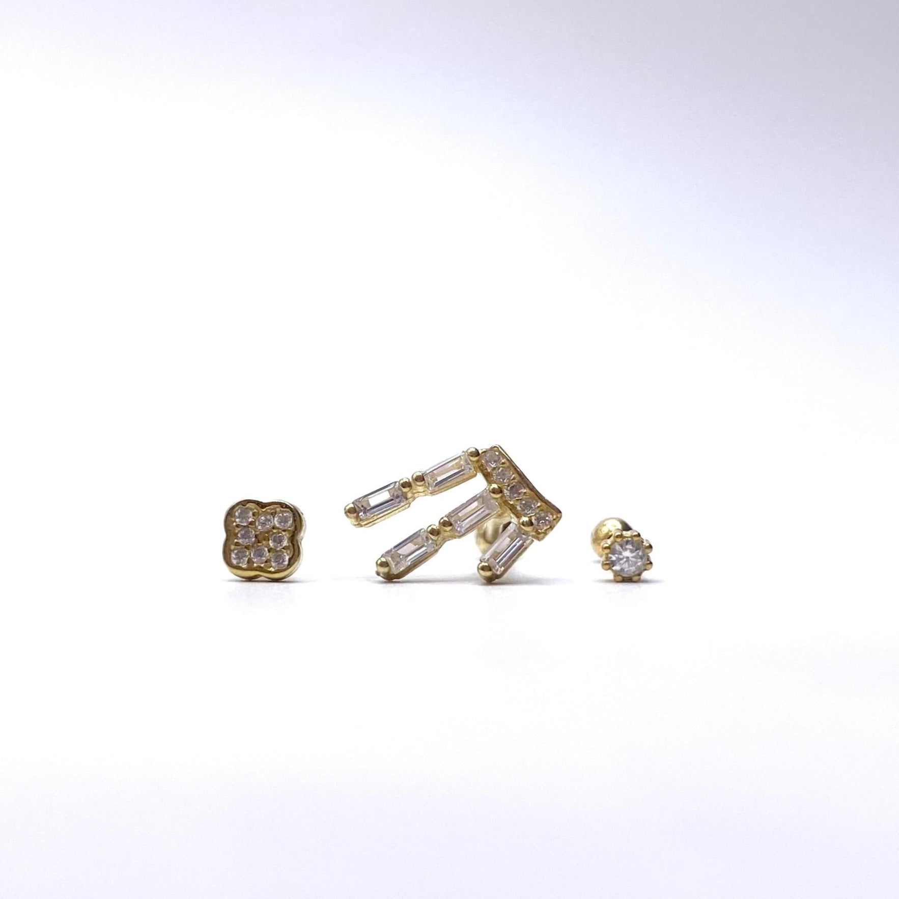 Set 3 cercei piercing din argint 925 suflat cu aur. Sistemul de inchidere este prin insurubare.